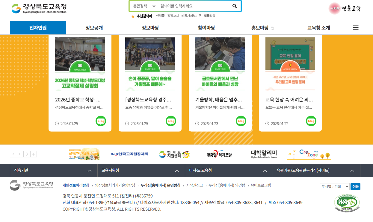 - 경북교육청 공식 홈페이지 접속 (https://www.gbe.kr/)
