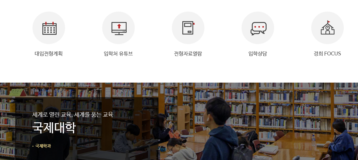 아래 링크를 클릭하면 경희대학교 입학처 공식 홈페이지로 이동하여 전형 정보, 모집요강, 전형 일정을 빠르게 확인할 수 있습니다.