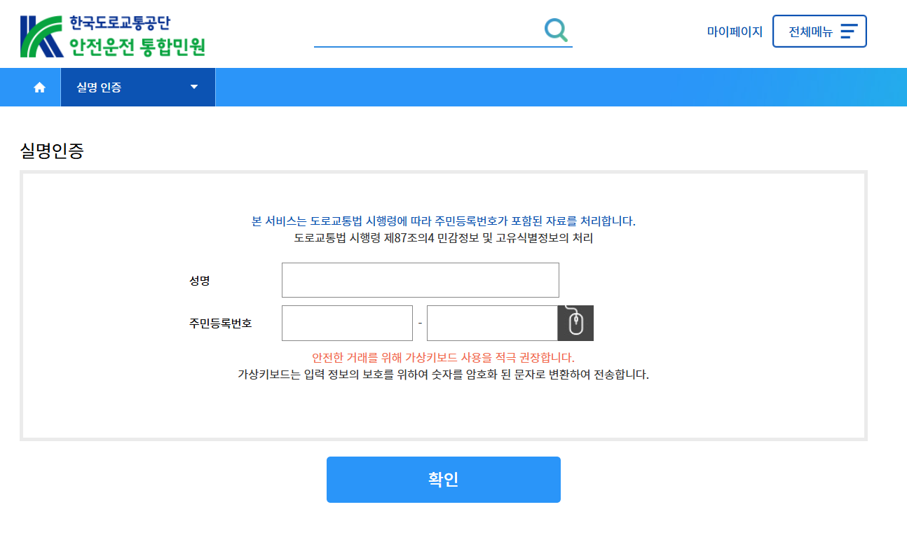 도로교통공단 안전운전 통합민원 홈페이지 바로가기 https://www.safedriving.or.kr