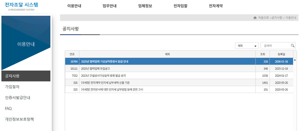 전자조달시스템의 핵심은 입찰 공고 확인이다.