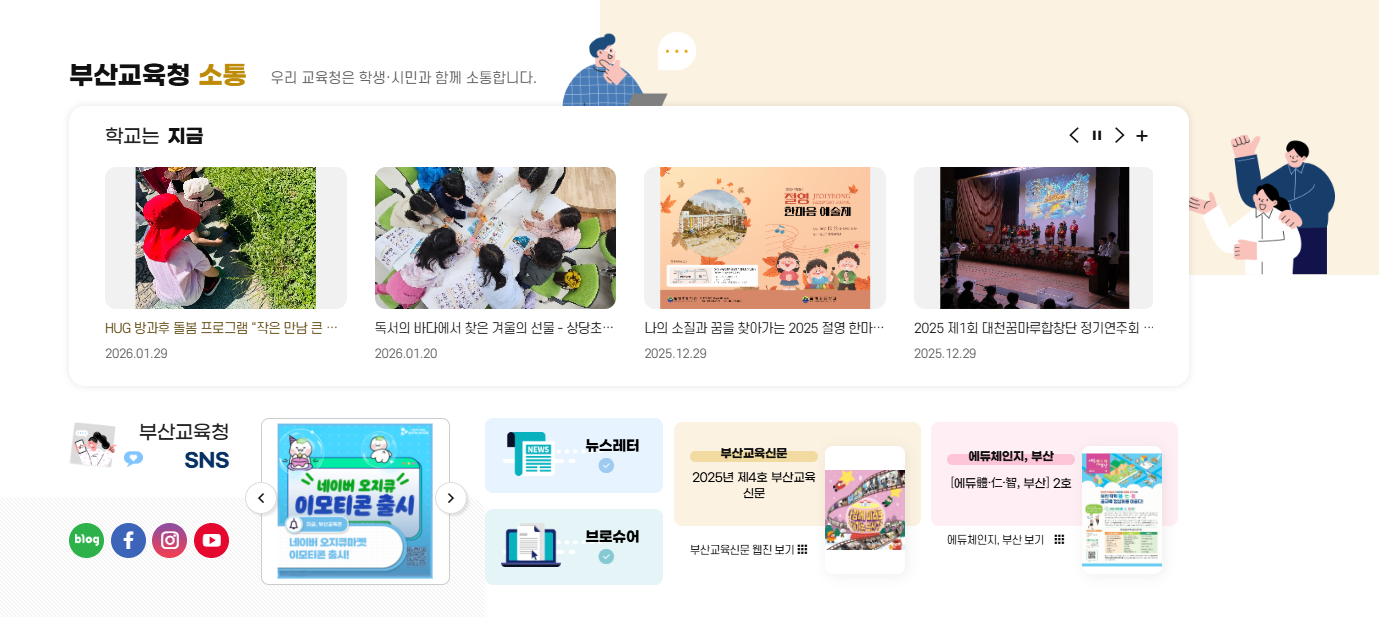 아래 링크를 클릭하면 부산시교육청 공식 홈페이지로 이동하여 각종 교육정보, 정책자료, 공지사항, 학생·학부모 지원 서비스 등을 곧바로 확인할 수 있습니다.