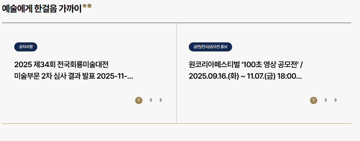 이곳은 지역 예술인과 문화예술 애호가를 위한 소식과 프로그램을 한곳에 모아 제공하는 플랫폼으로,