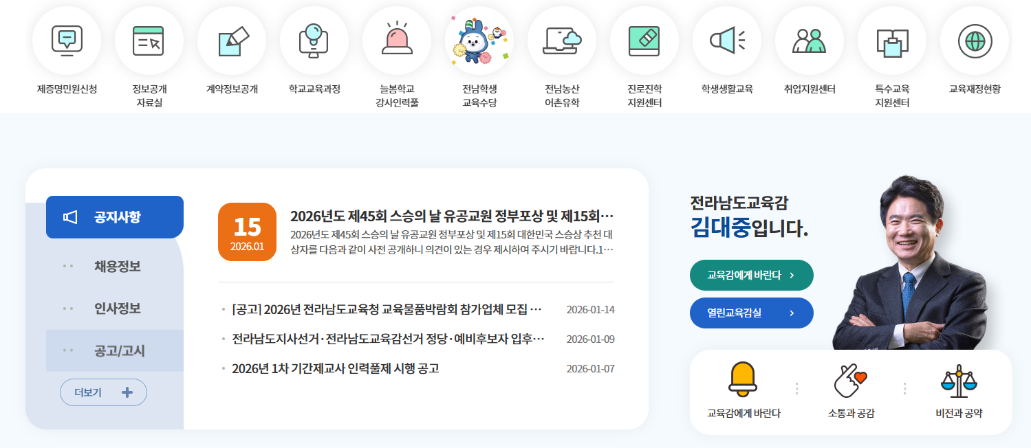 가장 먼저 방문해야 할 곳은 전남교육청 구인구직 포털이다.