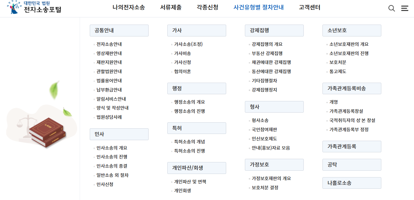- ‘소장 제출’ 메뉴에서 사건 종류 선택