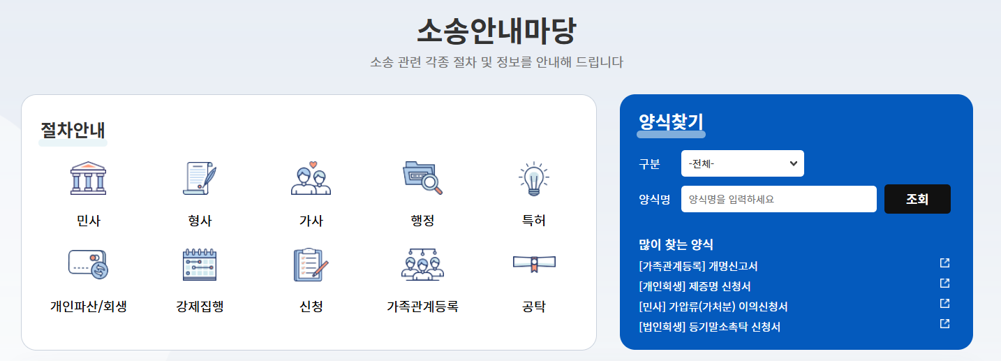 소장을 제출하거나 사건 진행상황을 확인하고 싶다면 아래 링크를 통해 전자소송 시스템에 접속해보세요.