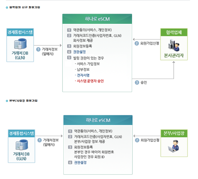 하나로 eSCM은 농협의 발주, 납품, 검수, 정산 등 공급망 관리 업무를 온라인으로 처리할 수 있도록 제공되는 통합 SCM 시스템이다. 협력업체와 농협 간 거래 정보를 전자문서 기반으로 관리하며,